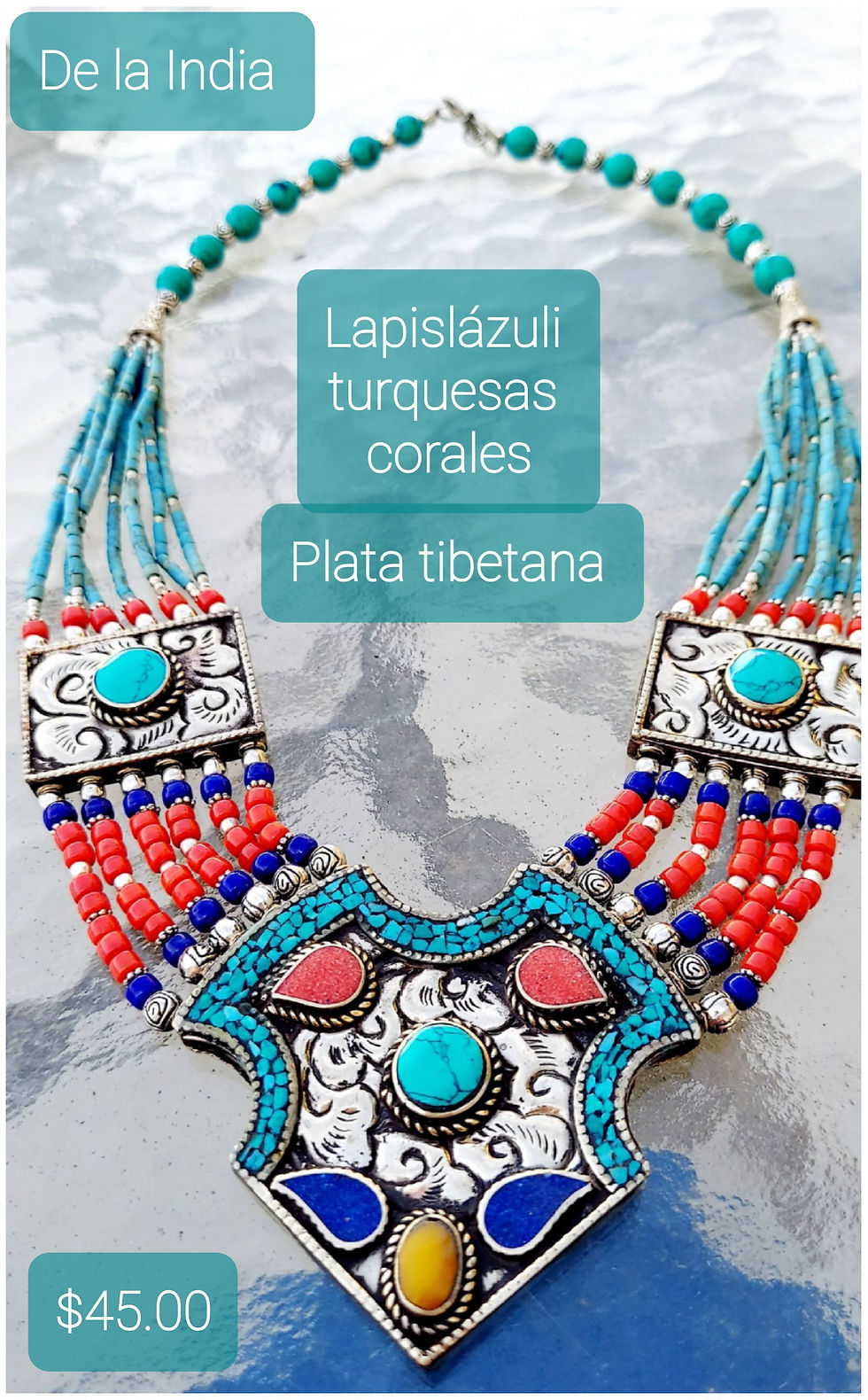 Gladys Gallardo Choker Tibetan Silver, lapis lazuli, turquoise